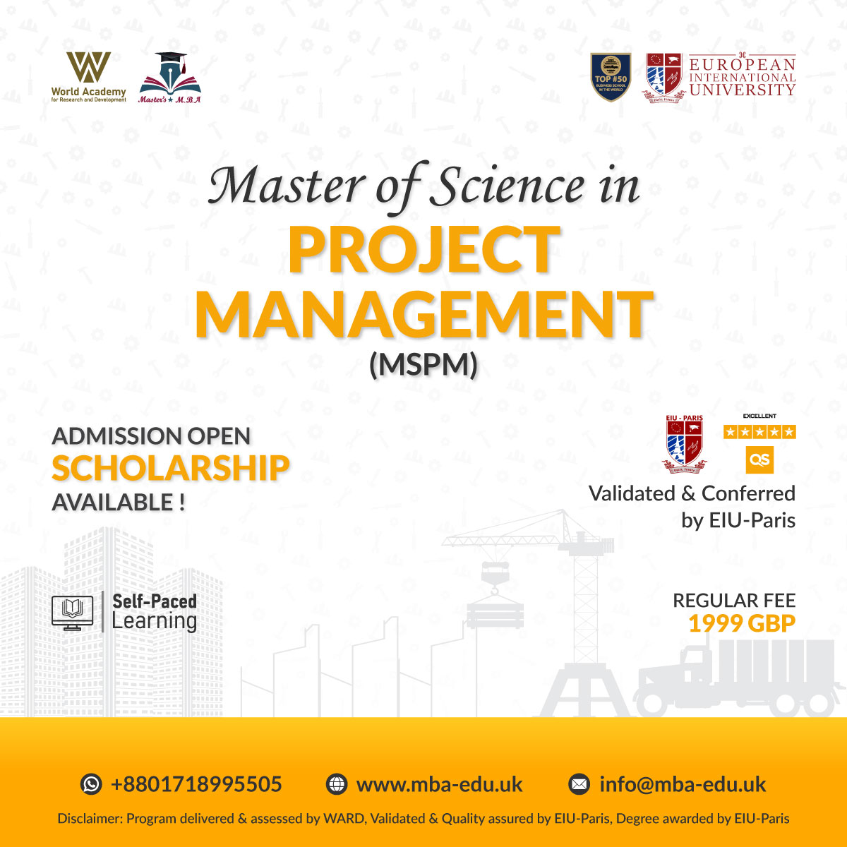 M 865: Project Finance & Cost Management [5 ECT]