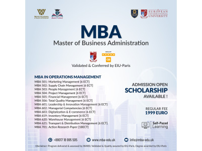 The Master of Business Administration (M.B.A.) program is designed to equip you with essential modern management knowledge, skills and tools to ensure your mindset, skill set and application ability for the business growth and sustainability.  MBA program accredited by European International University is one of the best in class in the global education. Our MBA Graduates are highly confident on the business management along with the subject matter socialization to contribute to the organization for its growth.
